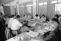 Reunião internacional do Comité Executivo da Federação Internacional dos Trabalhadores dos Meios AudioVisuais (FISTAV) com a representação portuguesa, no Hotel Baía, em Cascais, finalizada com uma conferência de imprensa.